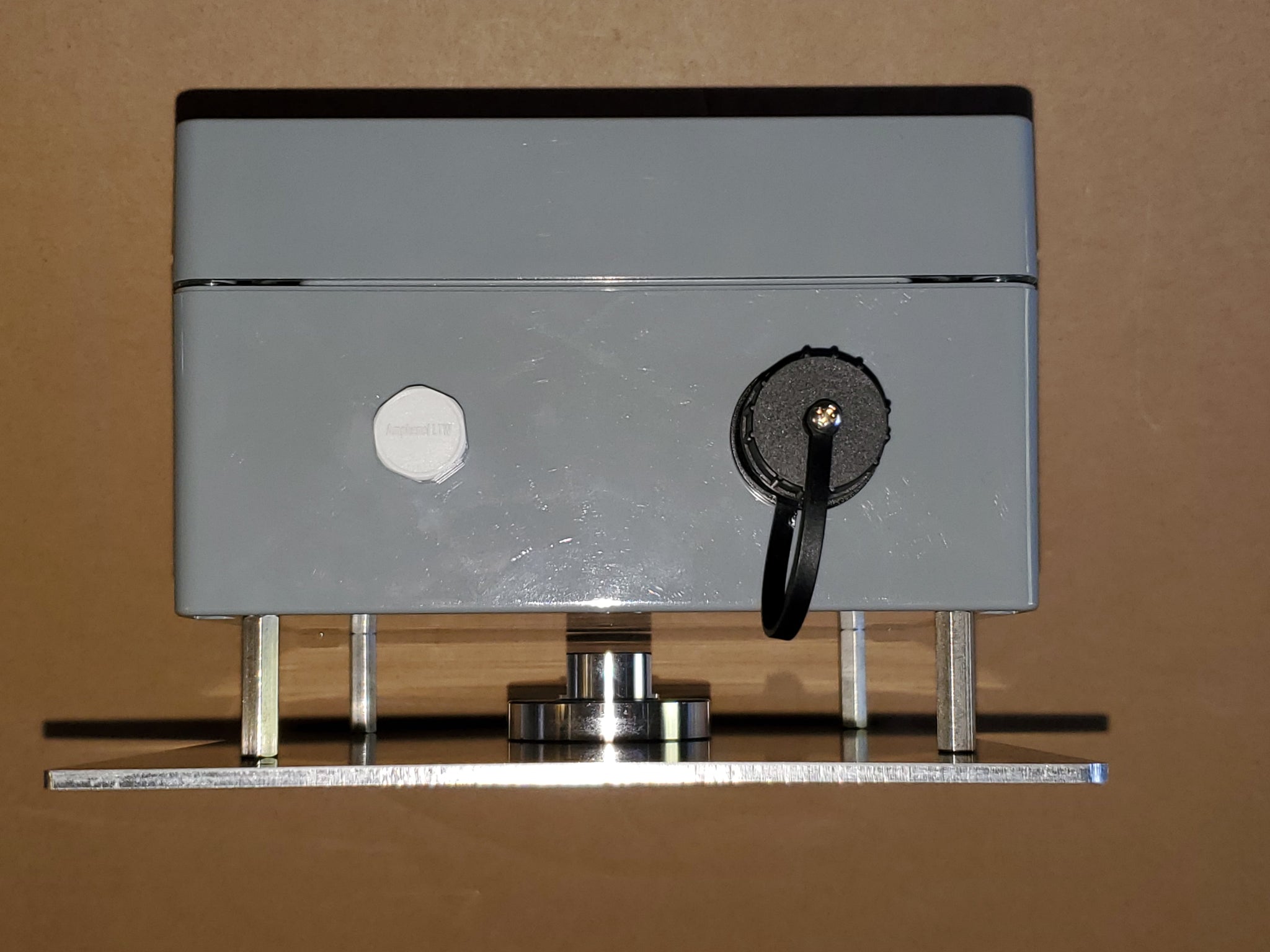 PTZ Camera tripod-mount junction box assembly with waterproof Ethernet connector and mating plug. Includes Dahua/Luminys camera mount adapter to G1-1/2 thread, internal connector to camera cable and teflon tape.